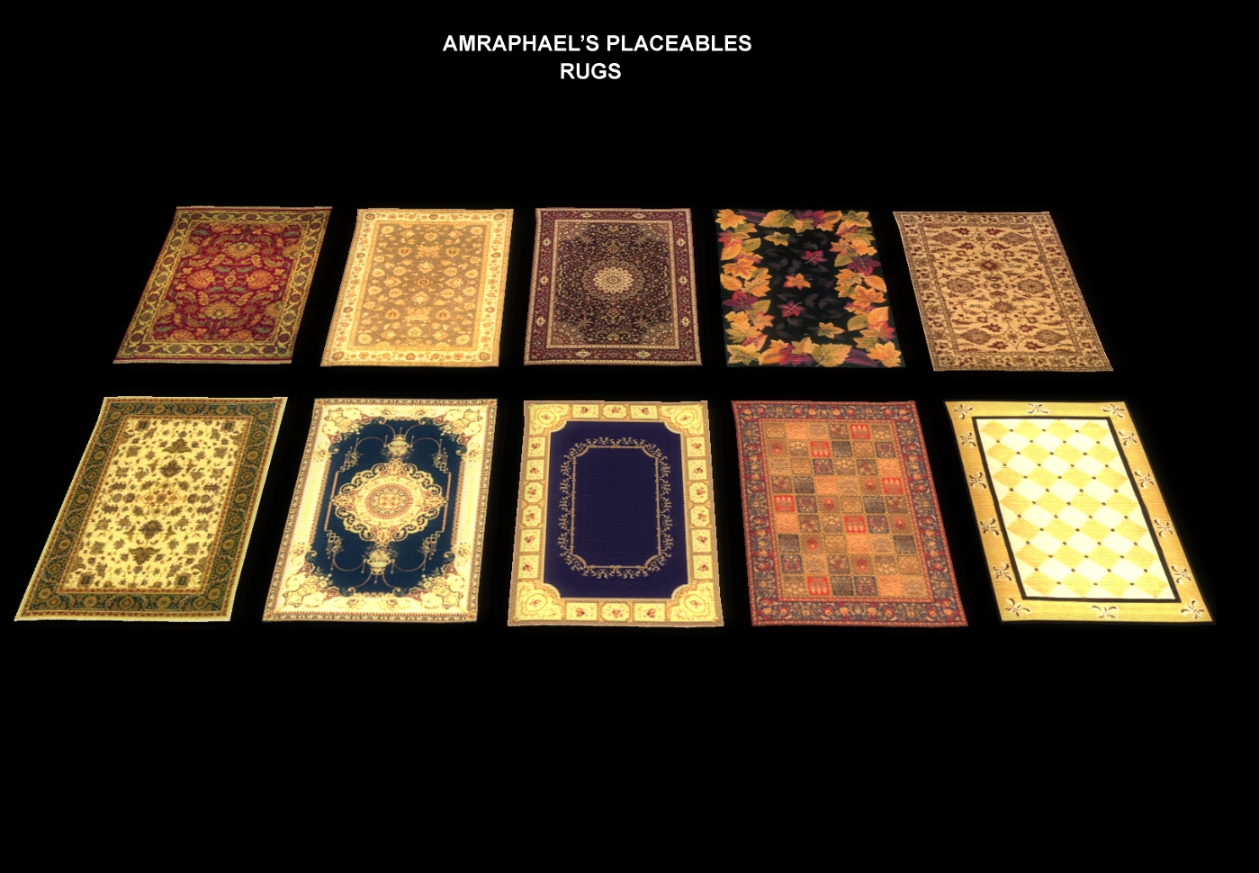 Your placeables are amazing! Particularly the rugs, as stated by many, and I alredy see an use for the birdnest, cobweb and floortiles! special mention goes to the "strange machine"... which vaguely reminds me of something I cannot quite pinpoint ;-)!
