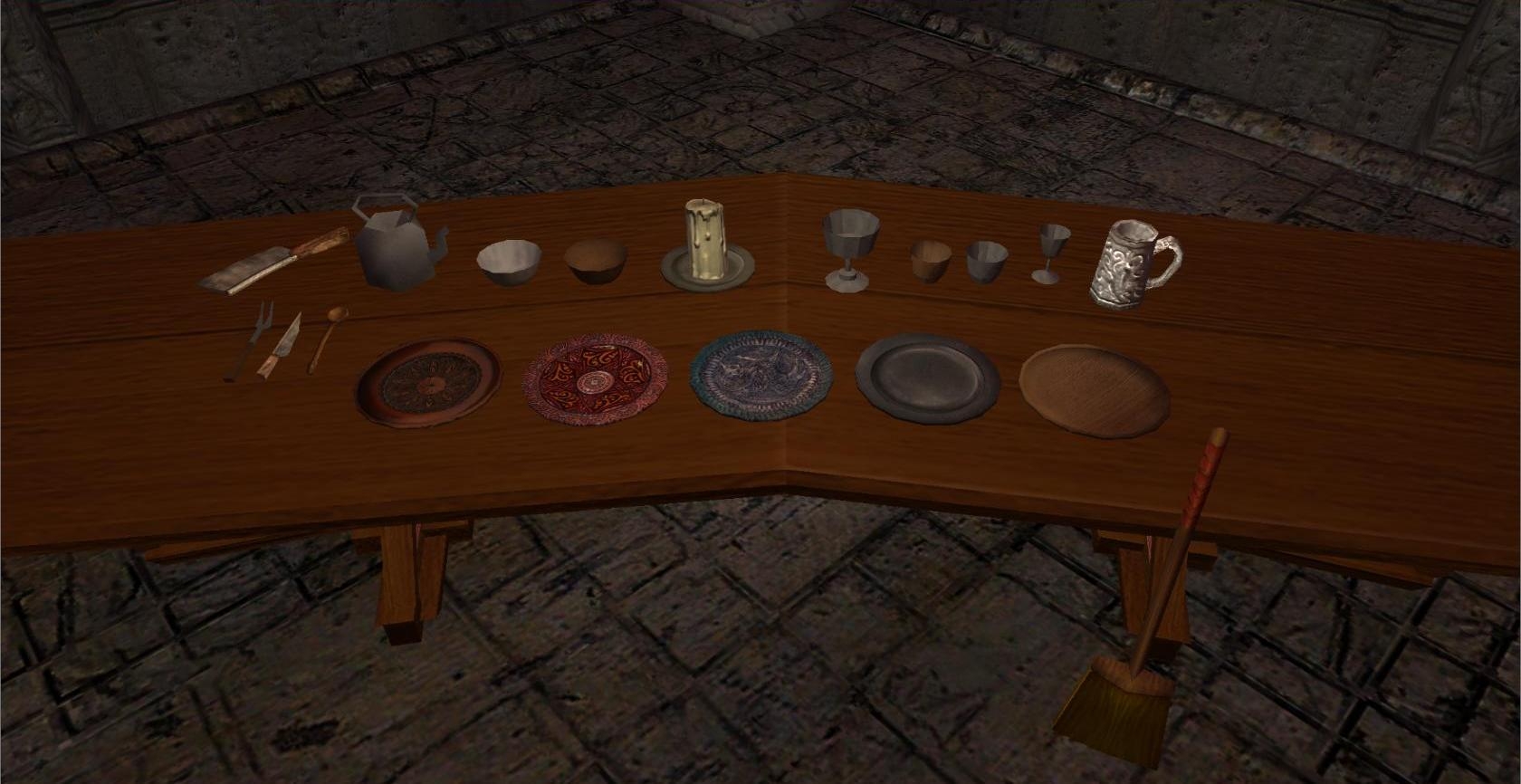 All placeables were made by Daronas. Some of them utilize parts of OEI models and textures. The broom is a conversion of MWMDragon�s broom club.