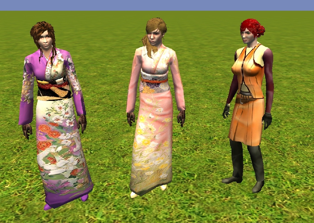 Note 1 : La partie supérieure des modèles est celle du corps créé par Jester. Les parties inférieurs sont de ma composition. Les textures proviennent de tenues Sims.