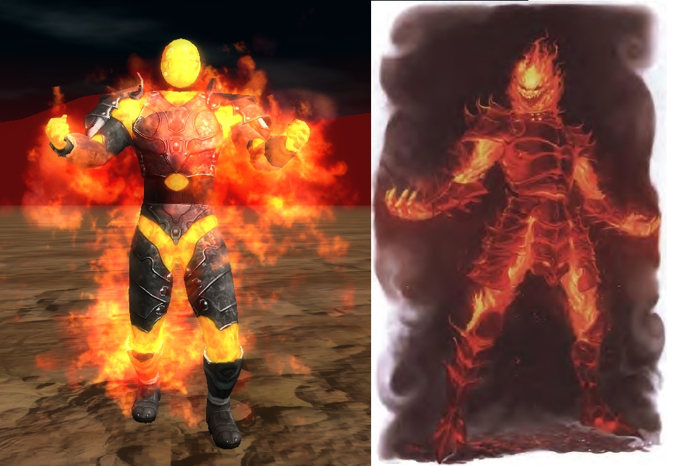 The zythar were spawned millennia ago by a balor legion whose members sought to seize control of the abyssal layer of their lord. Instilled with the destructive fury of their masters, zythars were given power over abyssal flame and infused with an insatiable appetite for combat. When the balors' rebellion failed, the zythars were claimed by the victorious demon lord, and they have since spread across the Abyss. Zythars do not care whom they serve. They live only to see other creatures burn, howling with dark laughter as their enemies are consumed by abyssal fire.