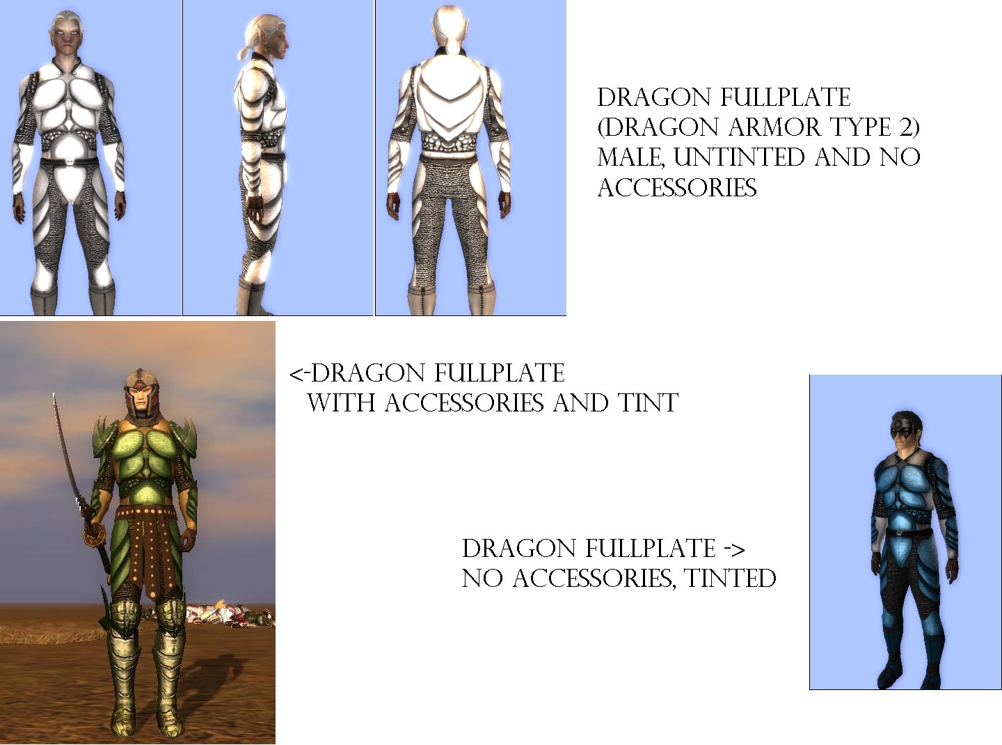 Dragon Full Plate armor: Second style of Dragon Armor. This one covers the whole body. The male version is new, while the female version is the original female dragon armor.