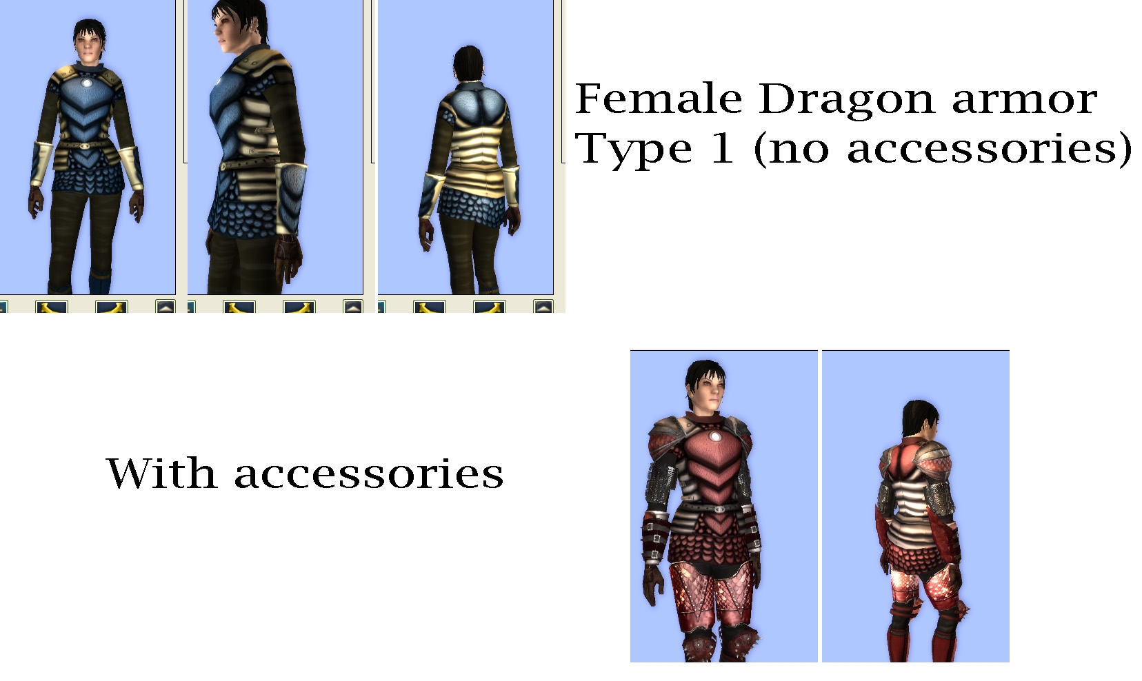 Female Dragon breastplate. This switches places with the original female dragon armor type. The original one now goes opposite to the new Dragon Full Plate.
