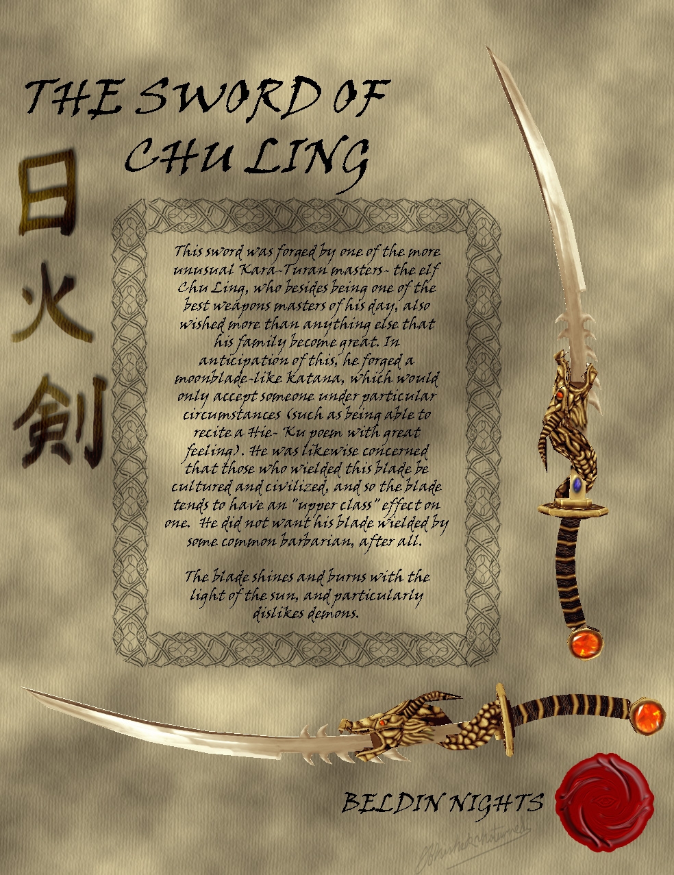Dragon Katana: Though not quite a katana, it was still made for that slot. The blade and handle come in two styles. One blade is normal, while the other type glows orange. One of the handles is extra long, while the other type is shorter.