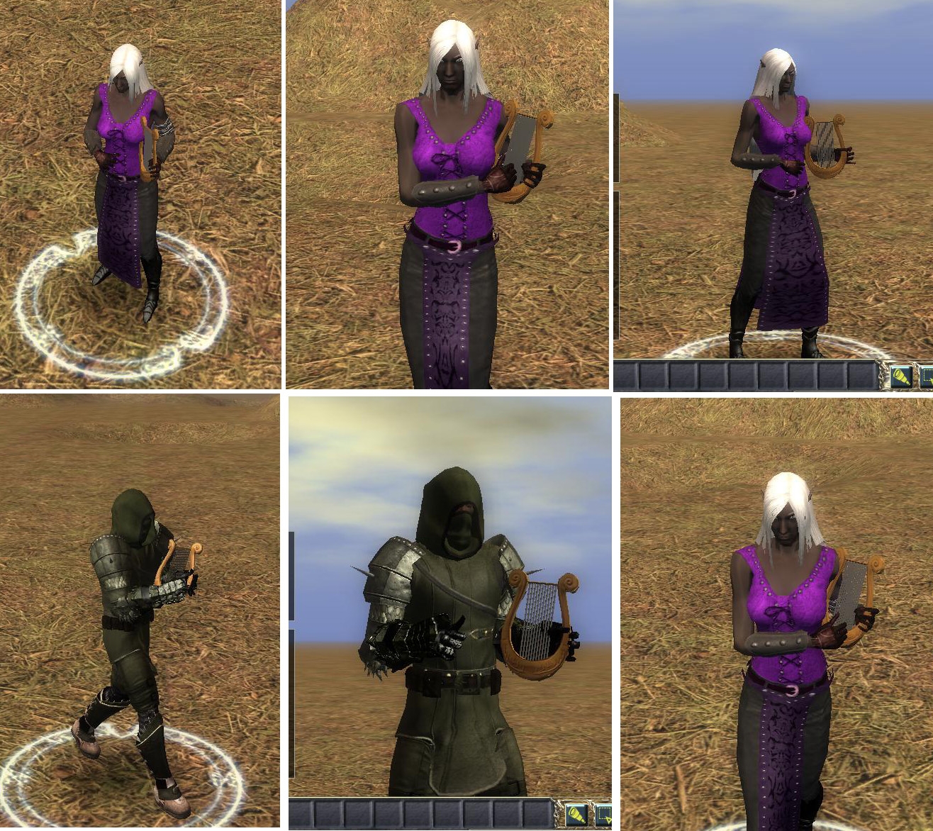Lyre: a lyre that fits in into the drum slot (because I couldn't think of where else to put it). It looks okay on females even while walking, though men tend to bash at it like a drum.