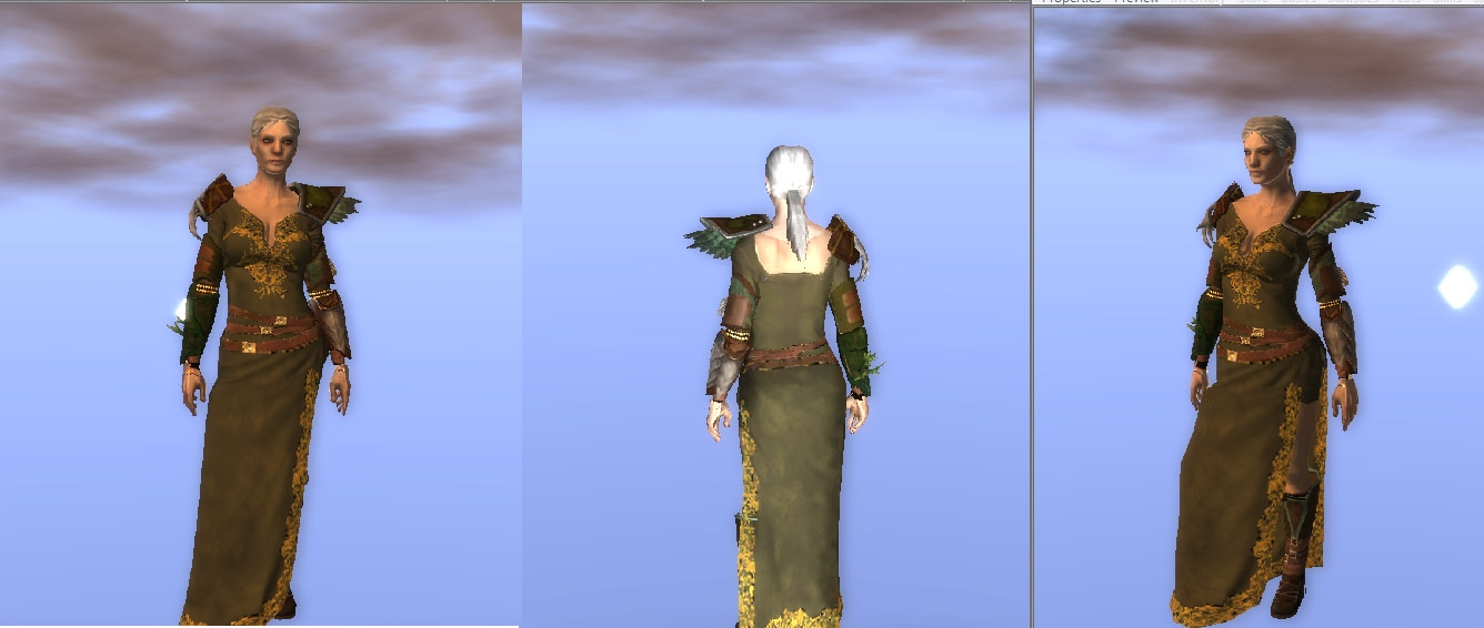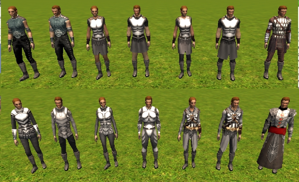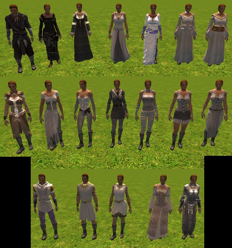 Silk Dress: a more refined looking version of the Torio Claven robe. Useable by female humans, halflings, planetouched, and elves.