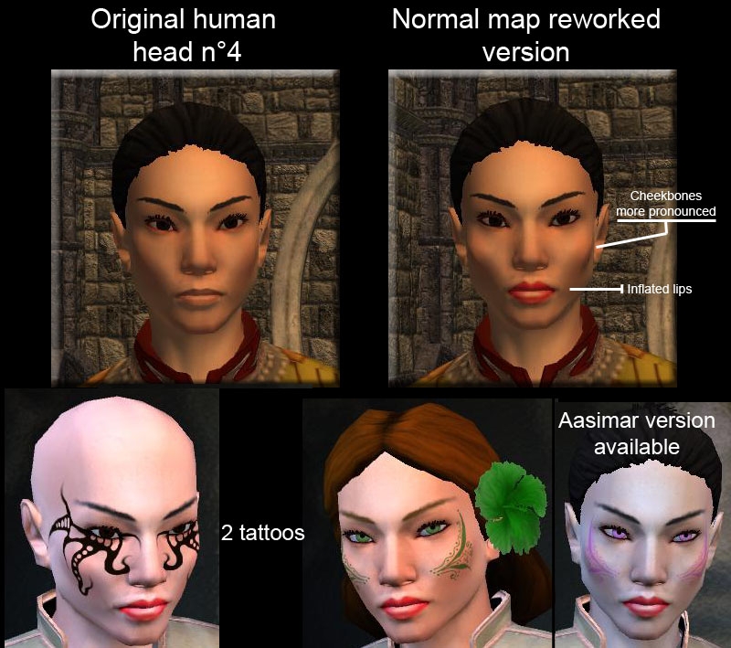 - from my previous human/aasimar release => 1 head plus 2 tattooed versions