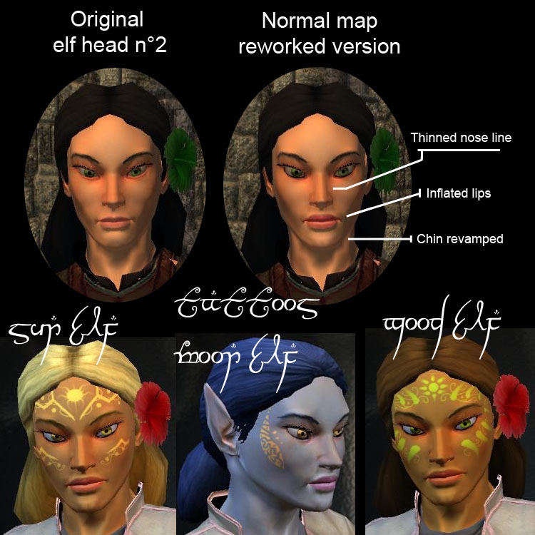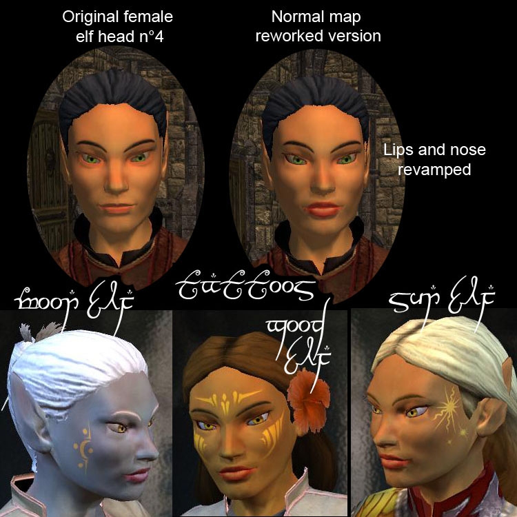 - for elves => 2 heads for moon, sun and wood elves plus for each one a tattooed version