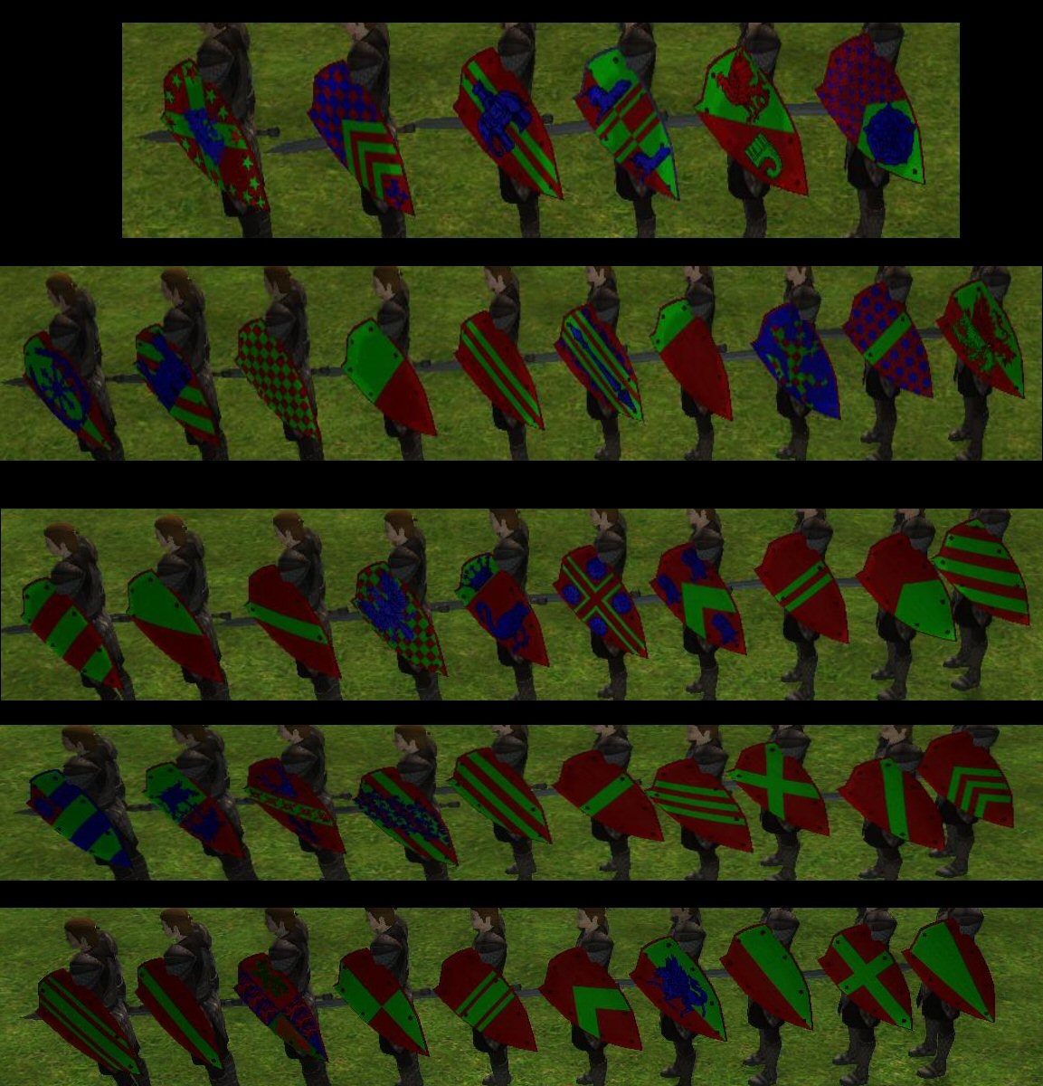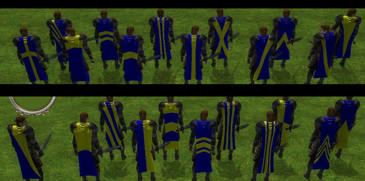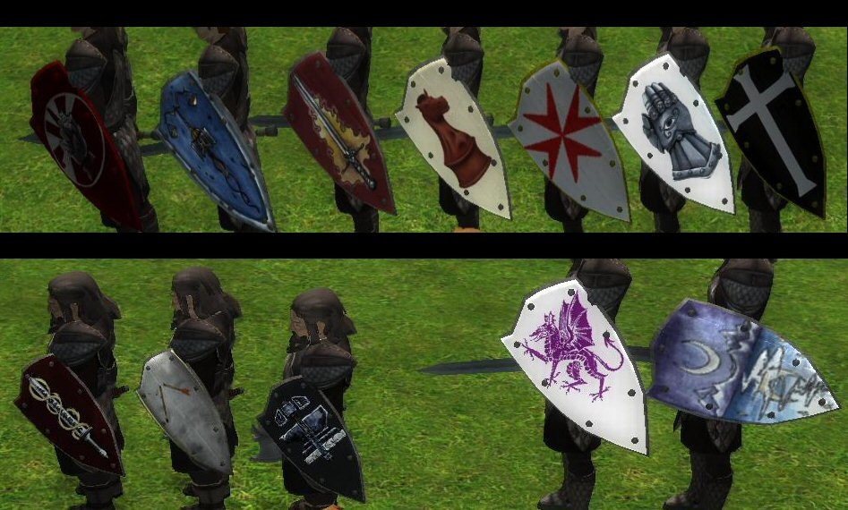 This is the pack I've been trying to create with the religious cloaks. It's just now that I've discovered how to retexture shields and bring my whole concept together.
