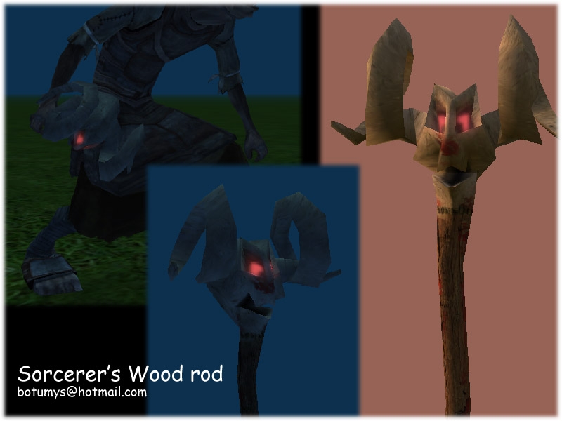 Une baguette inquietant avec un regard qui diffuse une lueur rougeatre. Donnez une histoire a cette arme ainsi que ses statistiques, je ne fais que modeliser :)