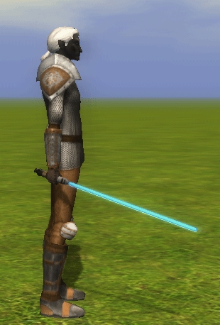 I do not wish to harm the author, but this is obvious at the screens #3 and #4. I don't know is it possible to create the lightsaber blade using FX only, but if applicable, this would be fine. Or, for this model, fixing that stupid-looking plain top of the model and adding an appropriate grade of glow and transparency.