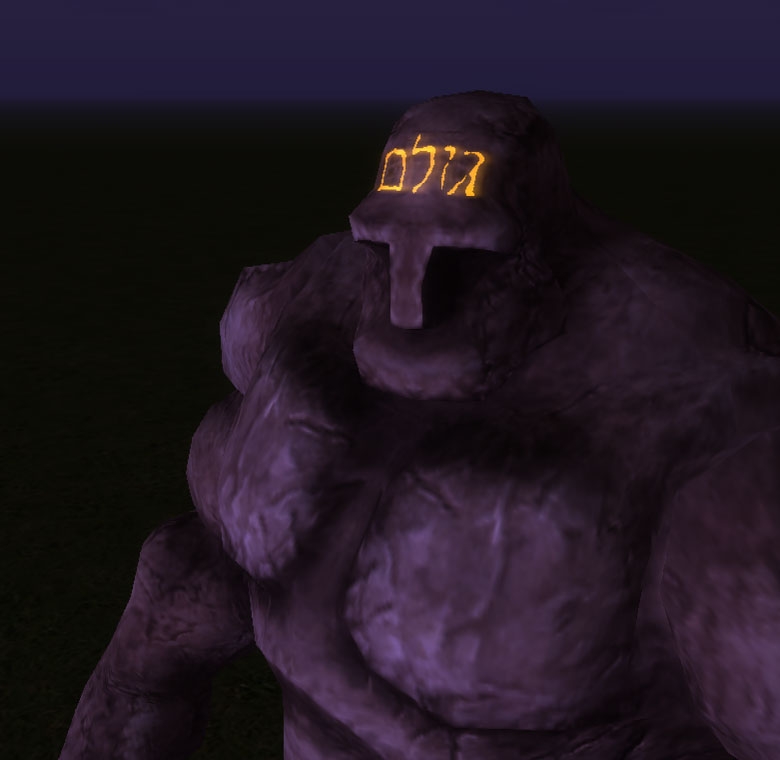 TheMastermind: Haha, cool that someone caught that. Yeah, the golem is originally a creature from Jewish folklore, and stories often would involve a command word being written on the Golem's forehead to bring it to life. I saw a few drawings with "golem" in hebrew scrawled on its forehead, so I thought that would be a neat touch.