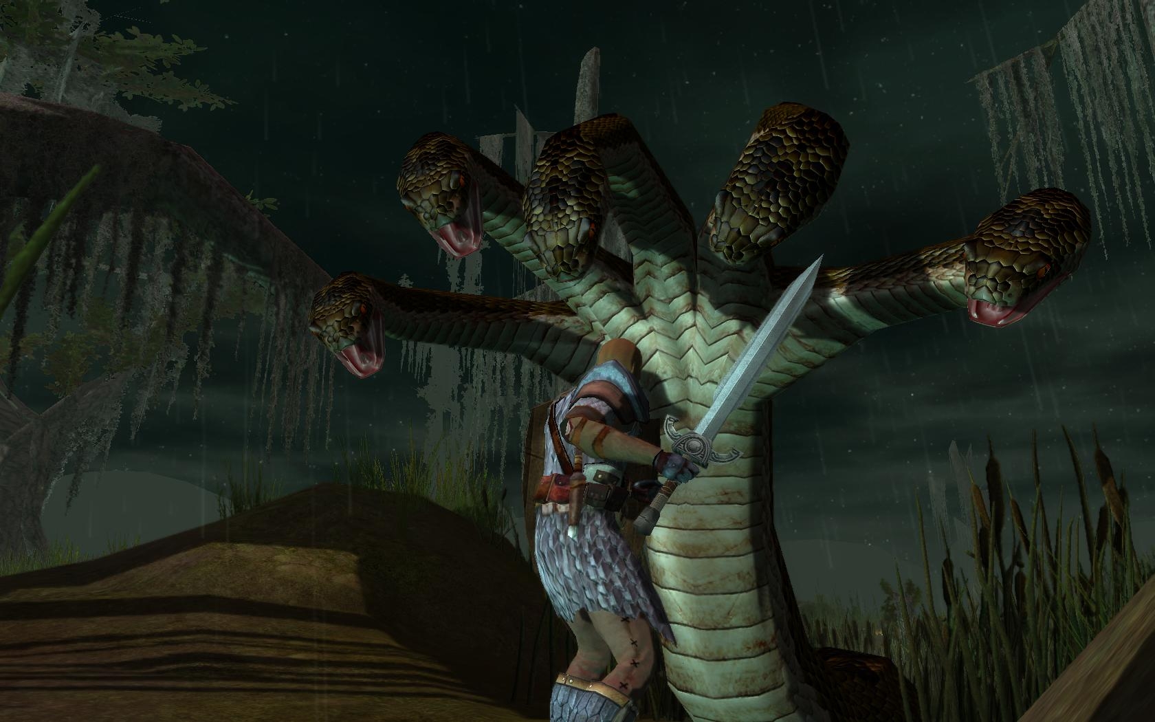 If you have never downloaded version 1.01 of the Lernean Hydra, the file to download is Hydra_v_1_2.zip. It contains all the creature's models, skeletons, animations, textures, and sample 2DA files, as well as a custom portrait.