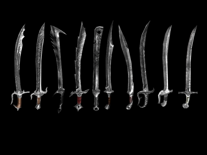 These are wonderfully realistic models. I especially like the falchion models, though it would be great if you could provide scaled up versions to be used to replace the in-game models for the two-handed falchion. I think we can all agree that the in-game models for falchions are quite bad. If anyone knows how to use one of these models, scaled up to the appropriate size, to replace current falchion models, that would be great.