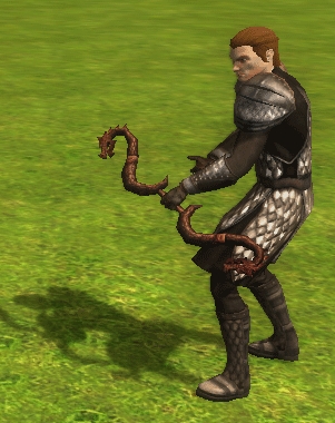 I had a string on it but in NWN2 the string never moves.. the animations dont exsist so it looks add that the gut never touches it. if you equip a normal shortbow look at the firing animation it sux.. the characters retracting hand isn't even close to the string. I think the next few bows I make will be one with a string and one without. For this bow in particular i wanted to have a string of fire.. but I am still only learning ;) _________________________ MWMDRAGON