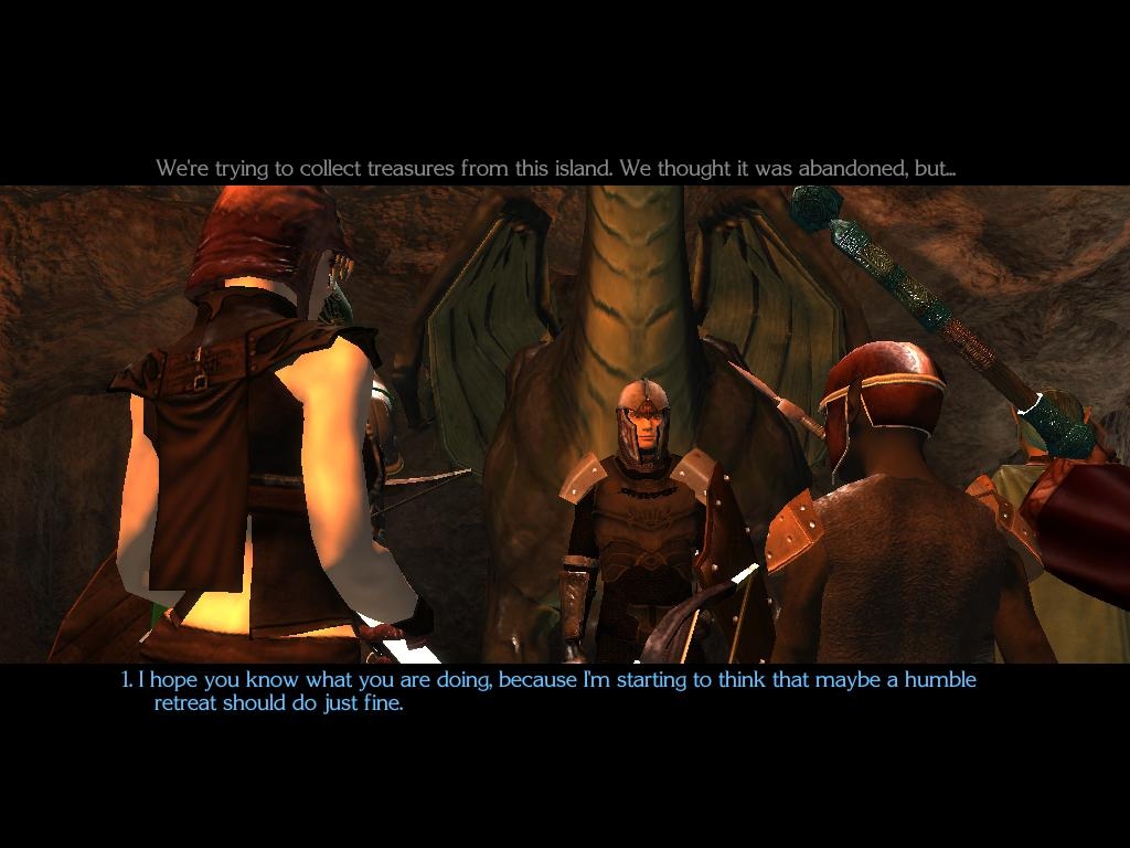 It's pure hack & slash, as stated. No dialogue options. Yeah, I knew that. And actually, that isn't so much of a problem. The problem is, mostly, the incredibly high magic/level of treasure. It seems to be almost epic character stuff, at times. +3 enchantments, +3 regeneration stuff, four times haste per day & +4 AC bracers, and so on. And there's a lot of that treasure. Equipping the characters becomes a bit tedious. As well as leveling them up, which happens often. And the party is a big one! :)