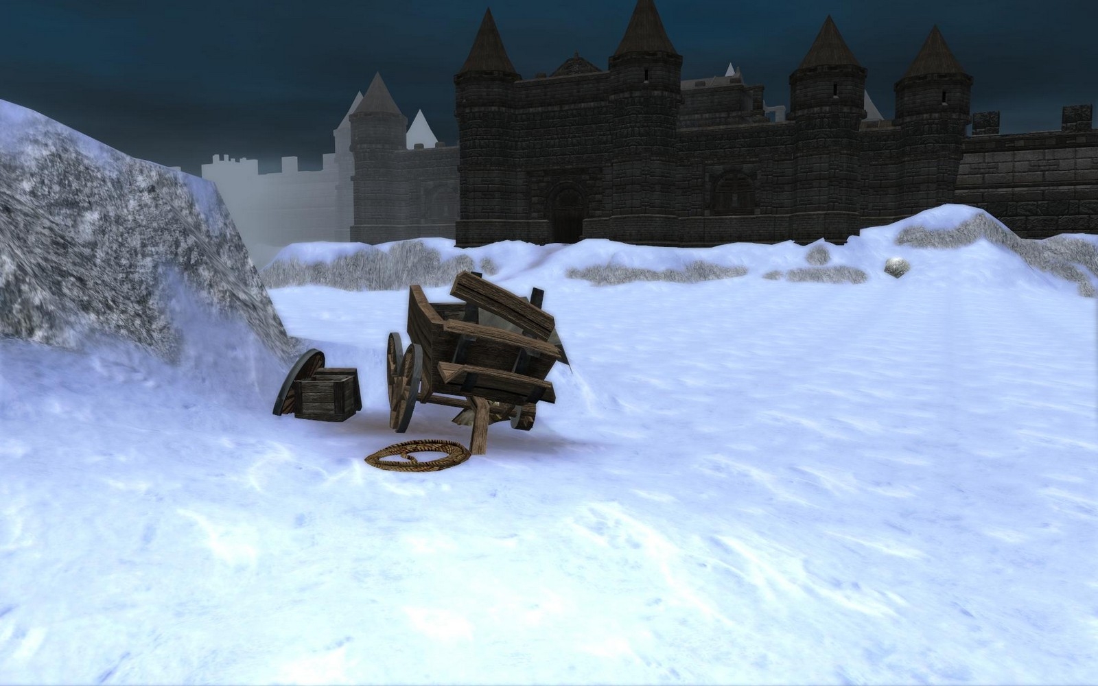 But before the attack at night, I approached the walls alone. There is a broken cart nearby with a hook and a rope, it kind of moved on from there...