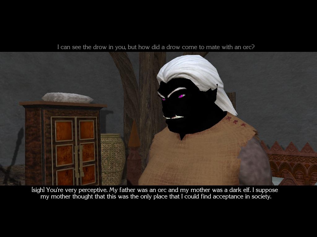- I did not like the forcing of a "relative" (read brother) into the list of companions. In this case the companions hardly interacted (at least as far as I could tell playing for two or three hours) so it probably did not matter too much, but forcing a relative into a party always makes me feel as if my character history is violated. I always like the history of what preceded the start of any adventure to be as neutral as possible. This is obvioulsy a personal opinion, but I thought I'd voice it anyway. I appreciate that some background to the current situation needs to be made up by the game creator, but as far as personal relationships are concerned (anything more than an aquaintance) should be made in-game and not be predetermined.