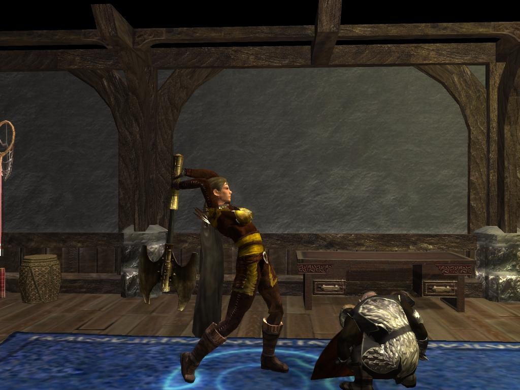 As far as how to get out of the door. I tried renaming the savenfo in the saved game file to another area. Didn't work. I hate to say it, but you might have to start over. You could save your character, restart a game in DMClient, have the DM avatar kill and remove anything you did up to the house, save again, then restart as a multi-player game, loading your saved character. You'd have to walk back to where you were. Or have a friend start in DMClient, have them jump you outside, then finish it in client. Or start over and try a different route. I'm writing the walkthrough as we speak. _________________________ The road to Ravenloft is paved with good intentions.