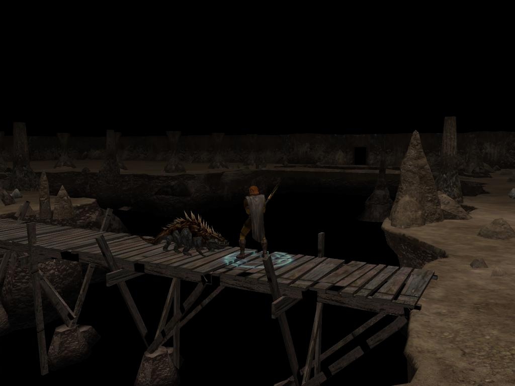Unfortunately I did a door to door transition from a normal door to a door in a placeable. Apparently you can't do that yet. So I redid those transitions to waypoints. Hate doing that because doors automatically open and close each other without scripts door to door. Also, the RWS Deep Chasms tileset seems to be causing problems with NPCs. They keep getting caught in areas where you can't fight them and vice versa. I suppose the sling would hit them, but I didn't have it handy to test. I removed the dwarfs and replaced all but 1 with encounters and hope that fixes it. Otherwise think of it as a happy bonus.