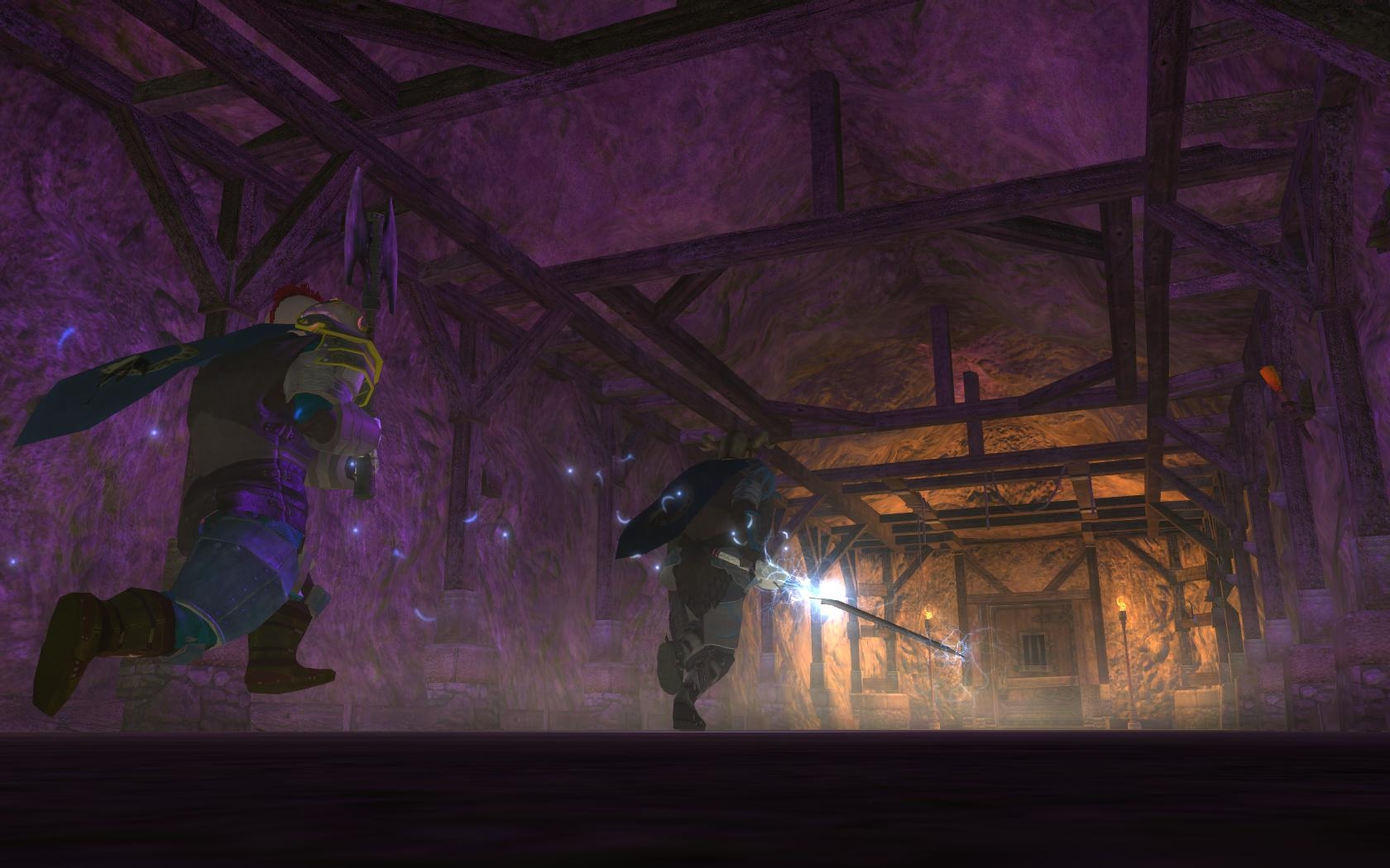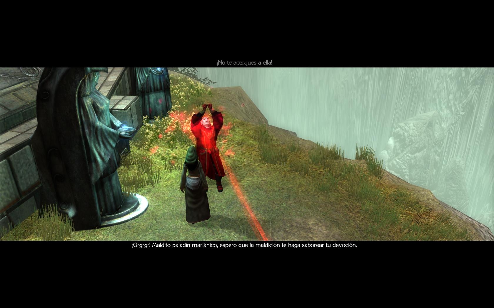 Now, that's something different. While most fantasy modules follow the same "baldursgatish" pattern of quest-packed exploring adventure, this mod is more akin to sympho-powermetal groups like Rhapsody of Fire and Thy Majestie, with its over-the-top heroics, cliched but catchy tunes and hyperspeed non-stopping action. It's not only the mod music that gives that hints, it's the overall style, and it works. In fact, it makes this mod one of the funniest action mods on the vault, and although I'm absolutely not a fan of action mods, and was very critical about mod's plot (just how more trips along with elf and dwarf to fight the old evil I should survive?) � despite all this, I felt involved. It's mostly about visuals and pacing: grandiose (althouth sometimes needing additional attension) landscapes, atmospheric (although having terrible problems with camera) indoor tileset, and terribly cliched, but effective in its own weird "rhapsodish" way cutscenes. Good programming tricks, too. As for the plot � two things I really liked was the time shifts and the way Marie was added into pantheon, thus making the mod closer to the real history, or, to be more precise, folklore about crusades and other medieval heroics. There's much more things about the plot I disliked, like following the same fantasy patterns over and over, but when the mod tries to break that heroic pattern, it agains comes out too obvious and too simply put, not really a plot hook but rather an unprepared attempt to make it. But that's just a cool action mod, after all, it should be played with your brains off�