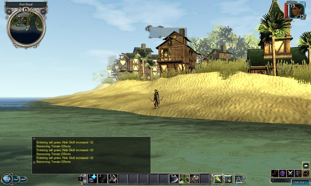 Rest and Respawn: Rest and respawn require food items (milk, meat, and Dana'an Stout/Meddygyln). These items are easily attained through hunting, gathering, or purchase. Some conversations will rest your character for free, and some items will heal or rest your character for free. Additionally, buying a drink in a tavern will rest you. On respawn, your character will receive 50% of their hit points, and will have a attack bonus penalty for 12 seconds. If you do not have a food item, you will respawn with 25% of your hitpoints and your AB penalty will last for 24 seconds.