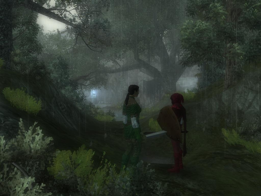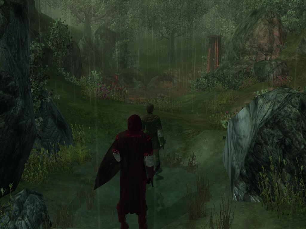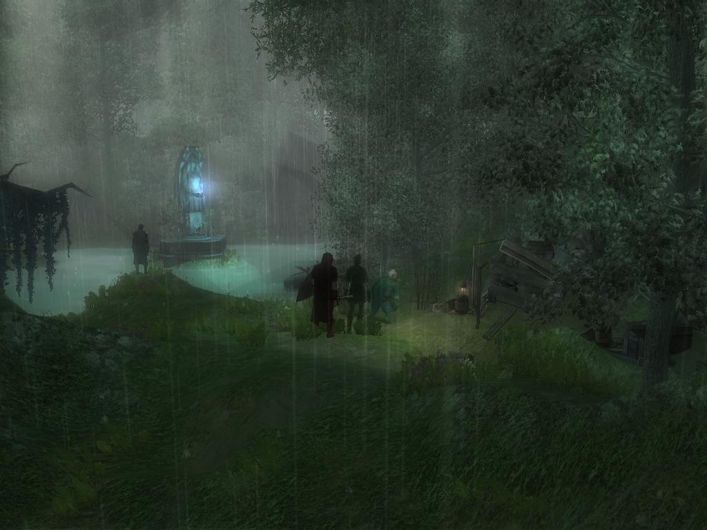 I thought the sequences where the ghosts pull you into the spirit world were very, very well done. Your skill with this sort of scene transition and npc manipulation increased vastly since Asphyxia. I also liked the bits with the elven statues in the ruins below the village ("Look out behind you" and such).
