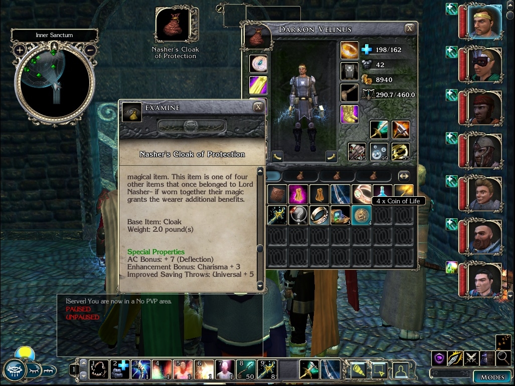(The default player menu is condensed. If you prefer a slightly larger menu then navigate to the C:\Program Files\Atari\Neverwinter Nights 2\Campaigns\Neverwinter Nights 2 Campaign\UI folder and rename playermenu_popup.xml to playermenu_popup-small.xml, and rename playermenu_popup-large.xml to playermenu_popup.xml.)