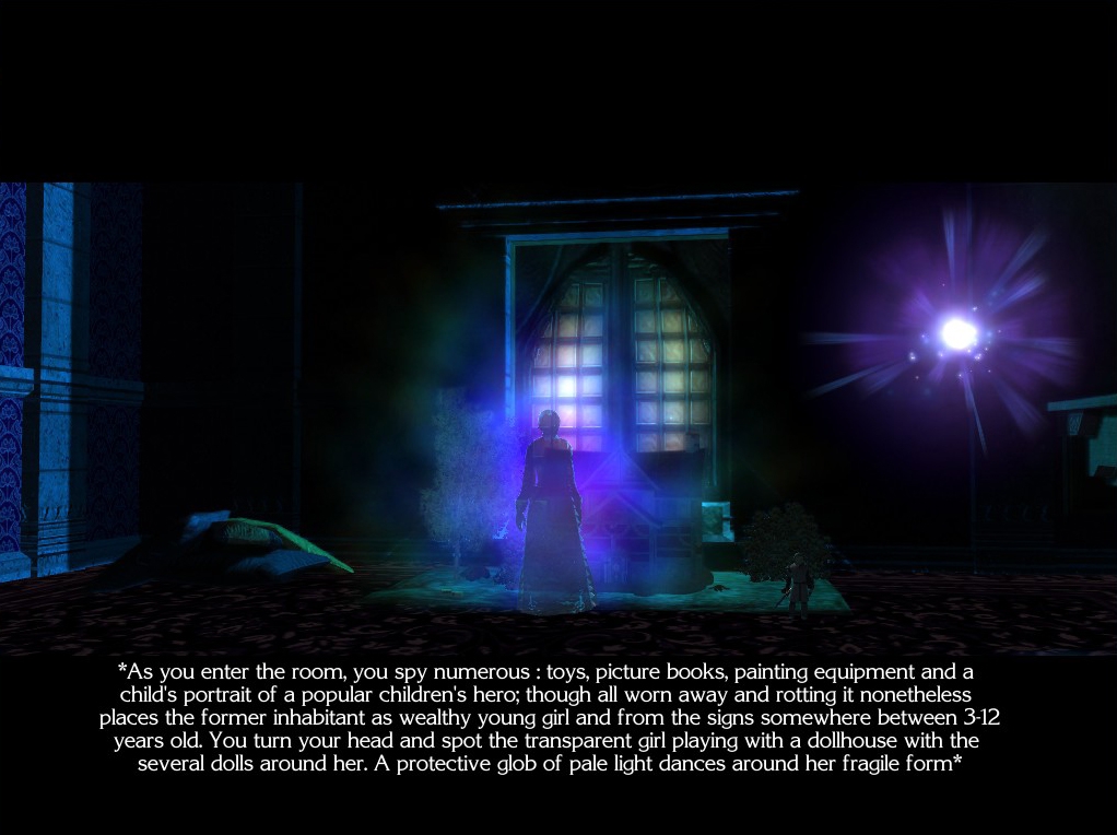 As for the NPCs, some are from the book: Strahd, Jander, the Burgomaster, the Vistani Hag; one of the trio mentioned, and Tatyana. The Wraith; I purposely didn't mention her name, but she was the rogue who accompanied and later betrayed Jander. You meet her in Jander's Room at the castle, near beginning of the game, and later at the werewolfs' cave in the forest; provided you investigated the forest crystal first. Though made up, Phoebe is supposed to be the daughter of Brother Martyrn, the priest who was also a companion of Jander. The protagonist's mentor is not part of the book series; but he is part of a particular organization in Ravenloft mentioned in his letter located in his secret study later in the game. Baron and Discord were a personal invention; though I wouldn't be surprised if some similar duo exists.