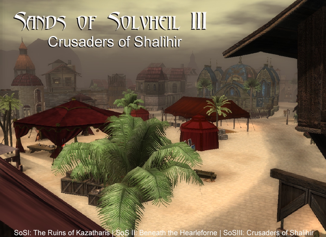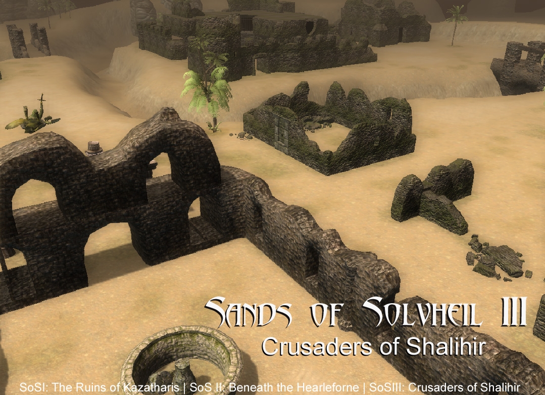 Sands of Solvheil III: Crusaders of Shalihir picks up where the previous module left off. A journey that started below deck on a ship in a river town leads you to into the desert and to the birthplace of man.