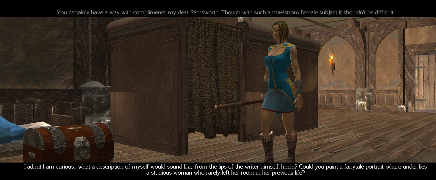 I was not overly fond of the dreamsequence that asks moral questions. I played a chaotic good character, and had to give very lawful answers to survive. (Impose our laws on the conquered land) I would have liked if a more chaotic answer could have been accepted.)