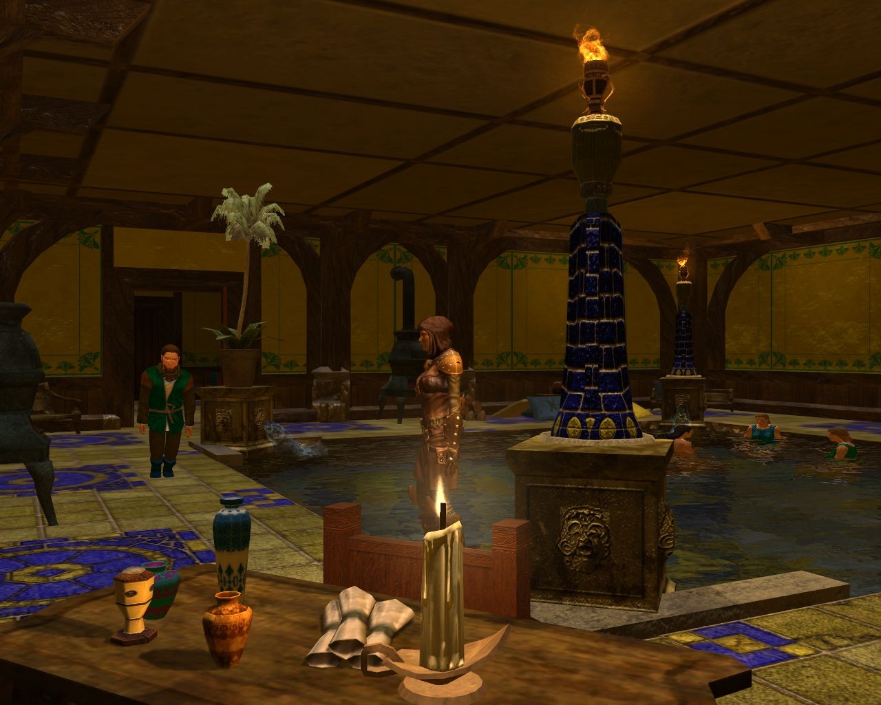Nett fand ich im Grunde auch, dass es einen wirklichen Tag- und Nachtwechsel gab, mit Zeiten zu denen Gebäude geschlossen oder Personen halt woanders waren und Elfen Reverie hielten. Kleine Kritik hier aber: Man hätte das Schlafsystem verwenden sollen, bei dem man die Option hat einfach bis zum Morgen zu warten. Dann hät ich es auch nicht schlimm gefunden, wenn auch die Händler Nachts abgeschlossen hätten ;)