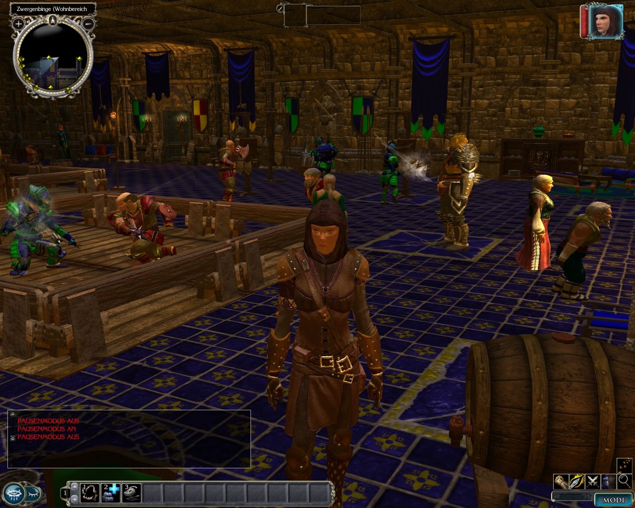 Die Zwergenbinge ist eine Augenweide, eine Farbfestival, ein... ach, unbeschreiblich in den vielen Details, dieser grandiosen Ausstattung, dieser liebevollen Bestückung. Raum für Raum ein Erlebnis! Ebenso die Zwerge, deren Namen alleine schon einen längeren in der Binge überlegen lassen, um sie alle kennenzulernen. Am Anfang ist es fast wie im richtigen Leben: man drückt sich mit leeren Geldbeutel an den Auslagen der Händler die Nase platt und sammelt, was man sammeln kann, macht auch mal unberechtige Griffe in fremde Truhen und spart auf dieses oder jenes, von dem man so nie gehört hat und das einen an Weihnachten erinnert. Wenn man sich jedoch wacker hält, findet man einiges und hat nach recht kurzer Zeit eine gute Ausrüstung beisammen, so dass man ganz bewusst seine Ausstattung bei den Händlern ergänzen kann - ein Riesenspass bei dieser Auswahl.