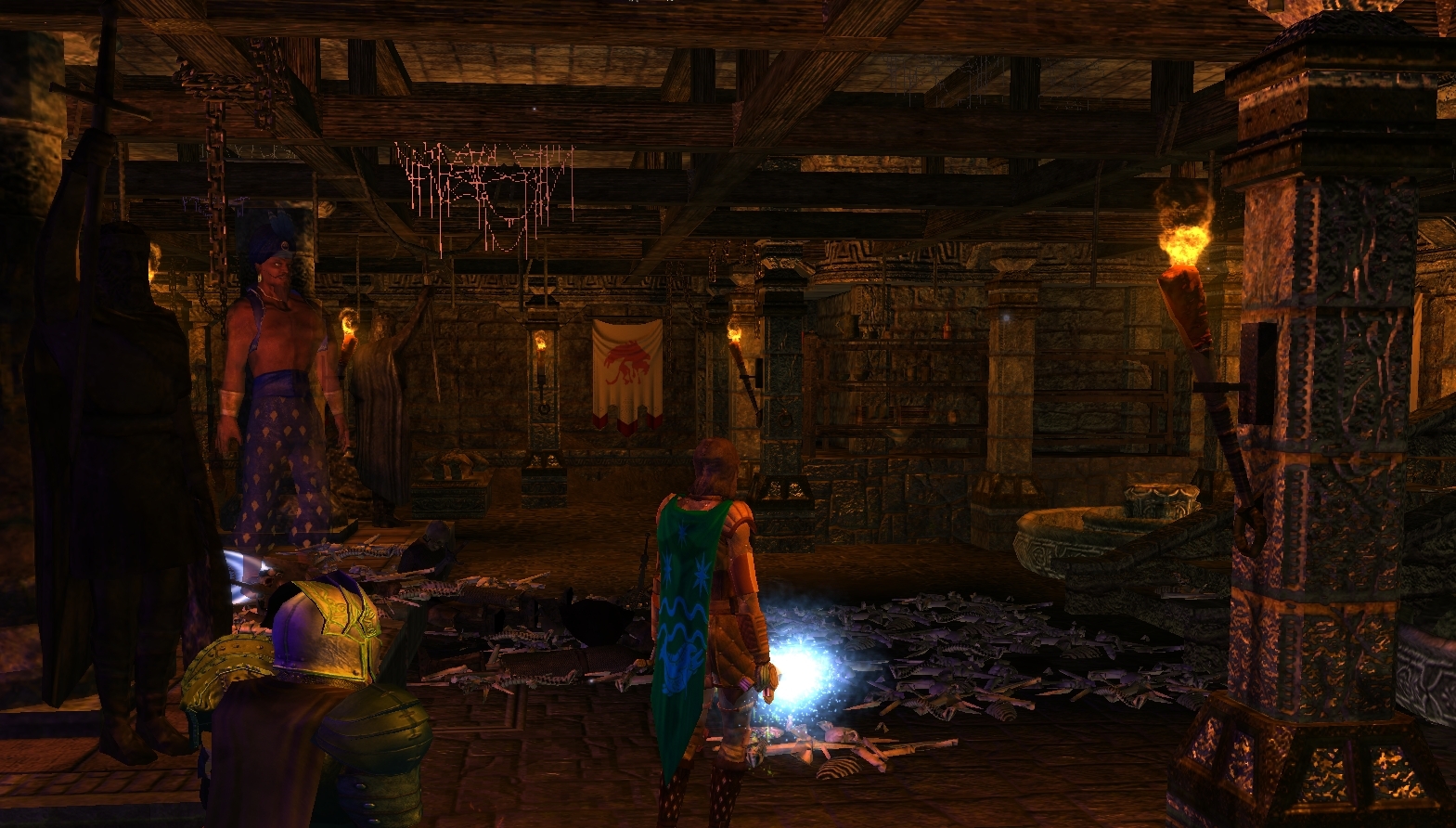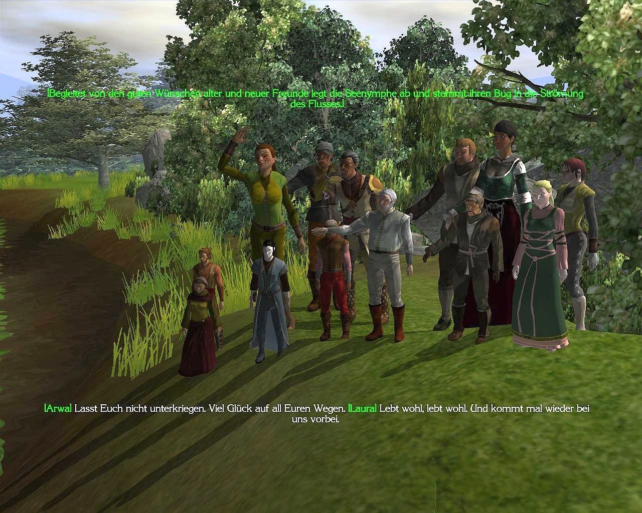 Du hast dich, nach Abschluss deiner Abenteuer bei den Halblingen, mit dem Helm des grossen Zwergenherrschers im Gepäck auf den Weg den Fluss hinunter gemacht. Immer mit der Ungewissheit im Nacken, ob sich eine selbsternannte �Drow-Valsharess� nicht doch, entgegen ihrer Äusserungen, aufmacht und dir den Helm und auch die heilige Clanaxt schon jetzt versucht abzujagen.