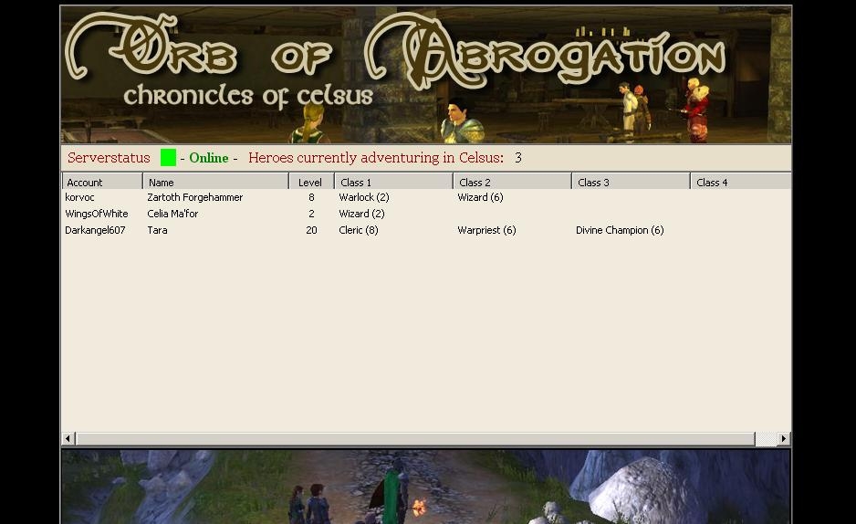 Generate a live server status webpage with a list of all players in a sortable grid. Easy to add additional fields. This is a version of vladiator's NWN Server Online Player PHP Web Status modified and adapted to NWN 2. You can find vladiat0r's version here: