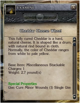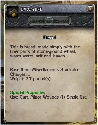 - All other foods can be used as a Cure Minor Wounds spell.