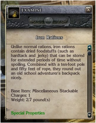 - Each iron rations can be used as a single use Cure Light Wounds spell.
