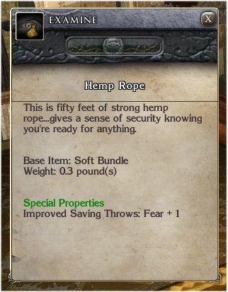 - The rope gives a +1 Fear saving throw