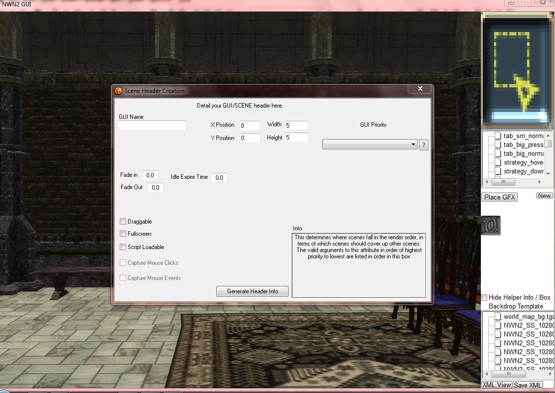 This utility that i've created allows you to speed through creation of GUI files for your persistent world or campaign. it features on screen generation of code and