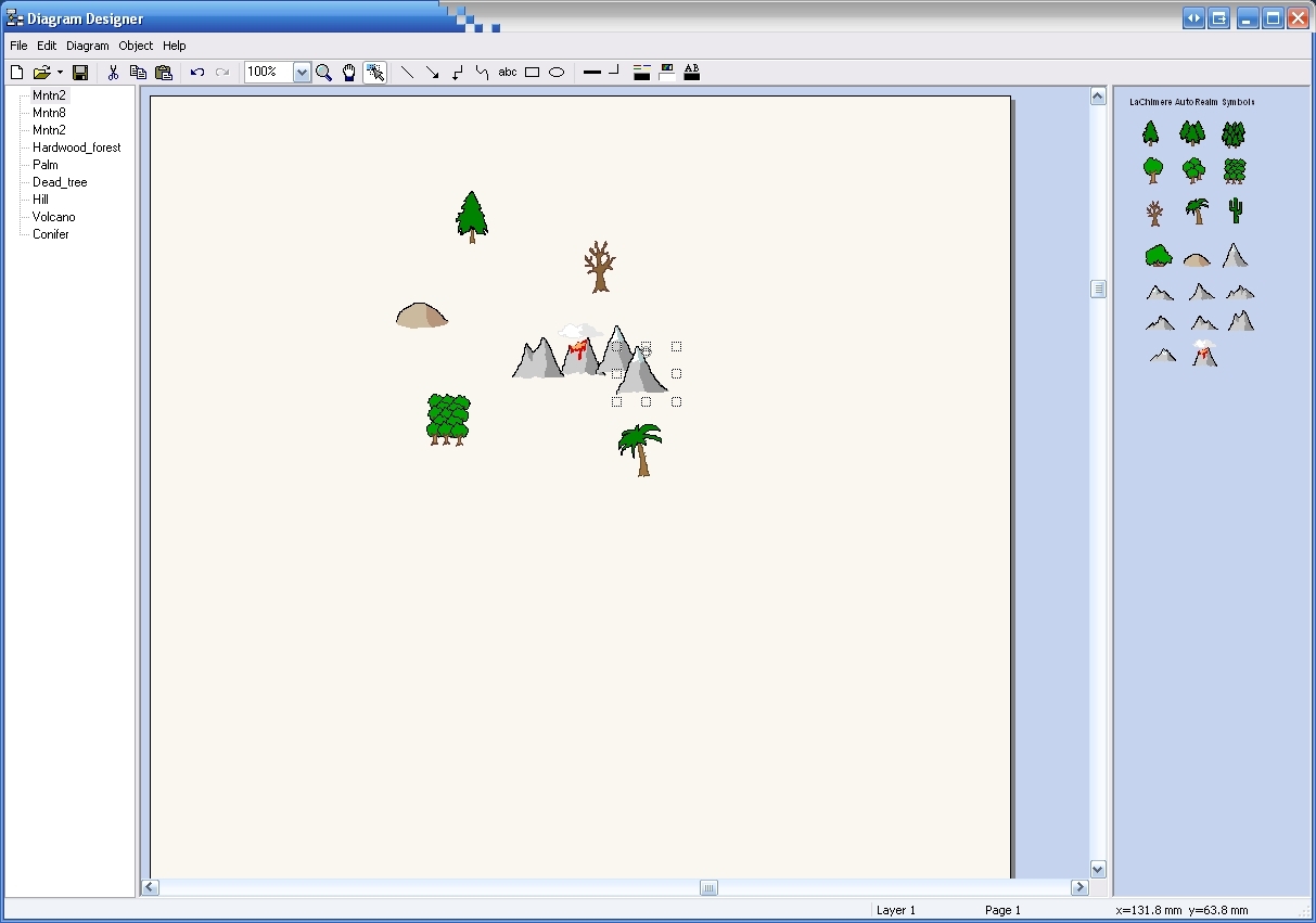 Simple vector graphics editor for creating flowcharts, diagrams and slide shows. Has templates for creating map with trees, volcanoes, etc..