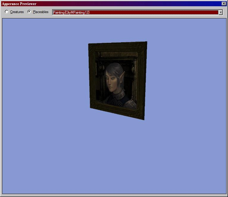sgt_why: this just previews the precreated creatures and placeables; I will add a male/female option in my next update, but there are very few creatures for whom it will make a difference _________________________ The Grinning Fool The World of Khalidine, a unique RP PW.