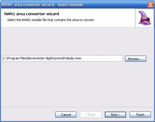 I tried to convert the kami mod. Since it is an exterior area, this tool cannot do very much with it. The only thing it can do is copy the objects into an existing NWN2 exterior area. So I created a new empty area, and used the converter to select the NWN1 .mod file. In the converter, I selected the option to use an existing area. The result is not very good as I expected, but I encountered no error.