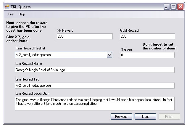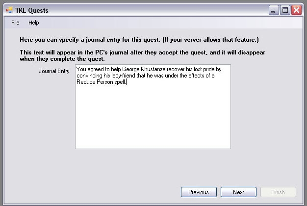 TKL Quests is a system for creating scripted quests for use in Persistent Worlds. It takes