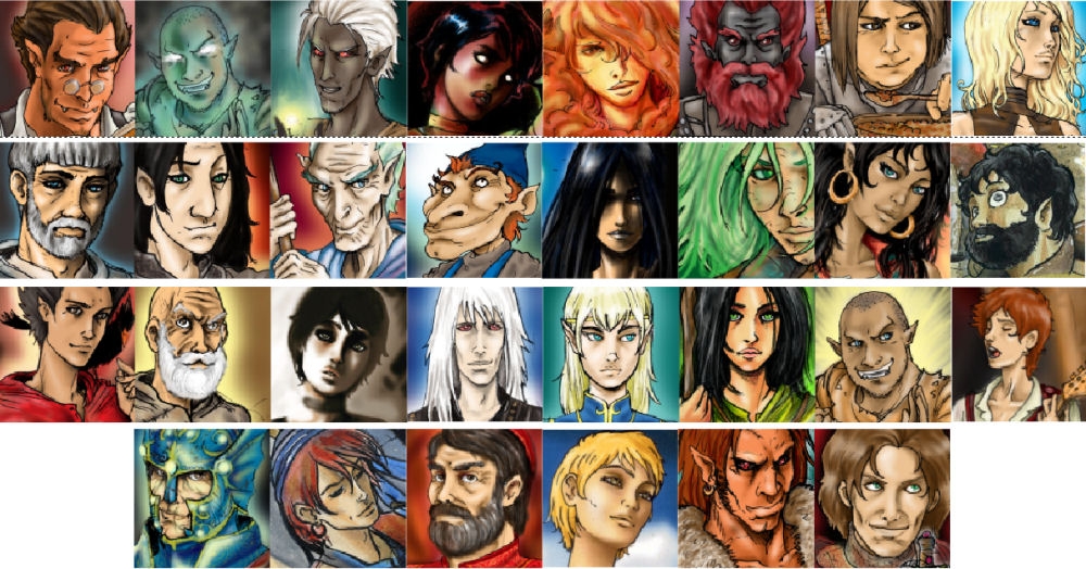 Here you are a compilation of original portraits made by me. Many of these were made for my D&D playing group, others have been cropped from larger illustrations I did some time ago (If you're interested in seeing more of my works, check this page: Link