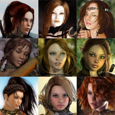 Compiled these 84 portraits while scanning for more Princess portraits to go into NWN & ADWR. These include elves and blonds with those of darker hair, but no dwarves, orcs or plain touched. Most are from 3D artists and though the full length ones look good, when reduced to NWN2 size the finite number of 3D models can start to show the clones they are. Still worth checking to match a particular look however.