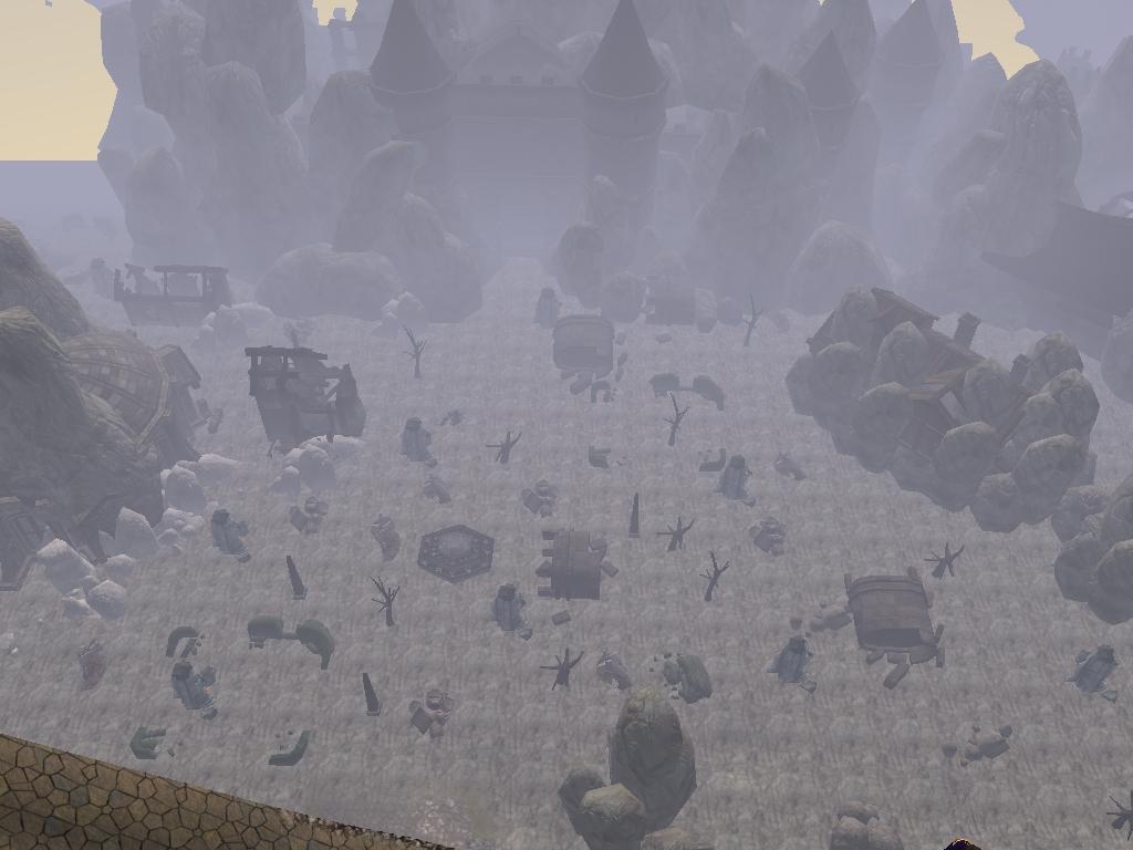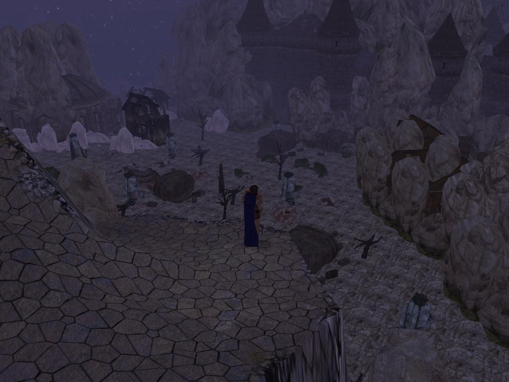 Agreed. Just having looked at the screenshots, I like the ruins and the rocks surrounding the keep. However the cobbling texture doesn't look good in the first image where its stretched out by that steep slope. And, in the 3rd image, the clean and orderly cobbles on the path descending into the ruins are in obvious contrast to the decayed state of the surrounding area.