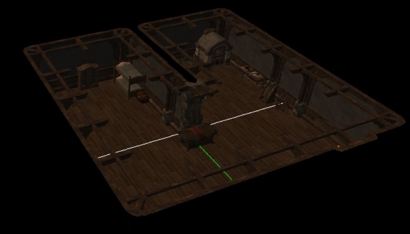 Exterior size is 8x8 and contains a river, sea, 2 enterable buildings and alot of placables.