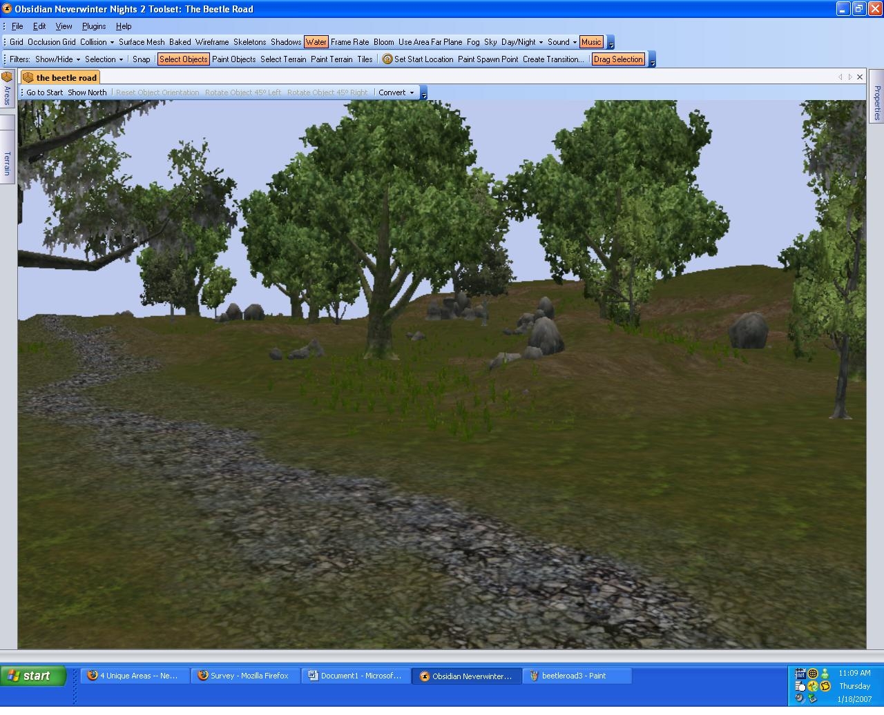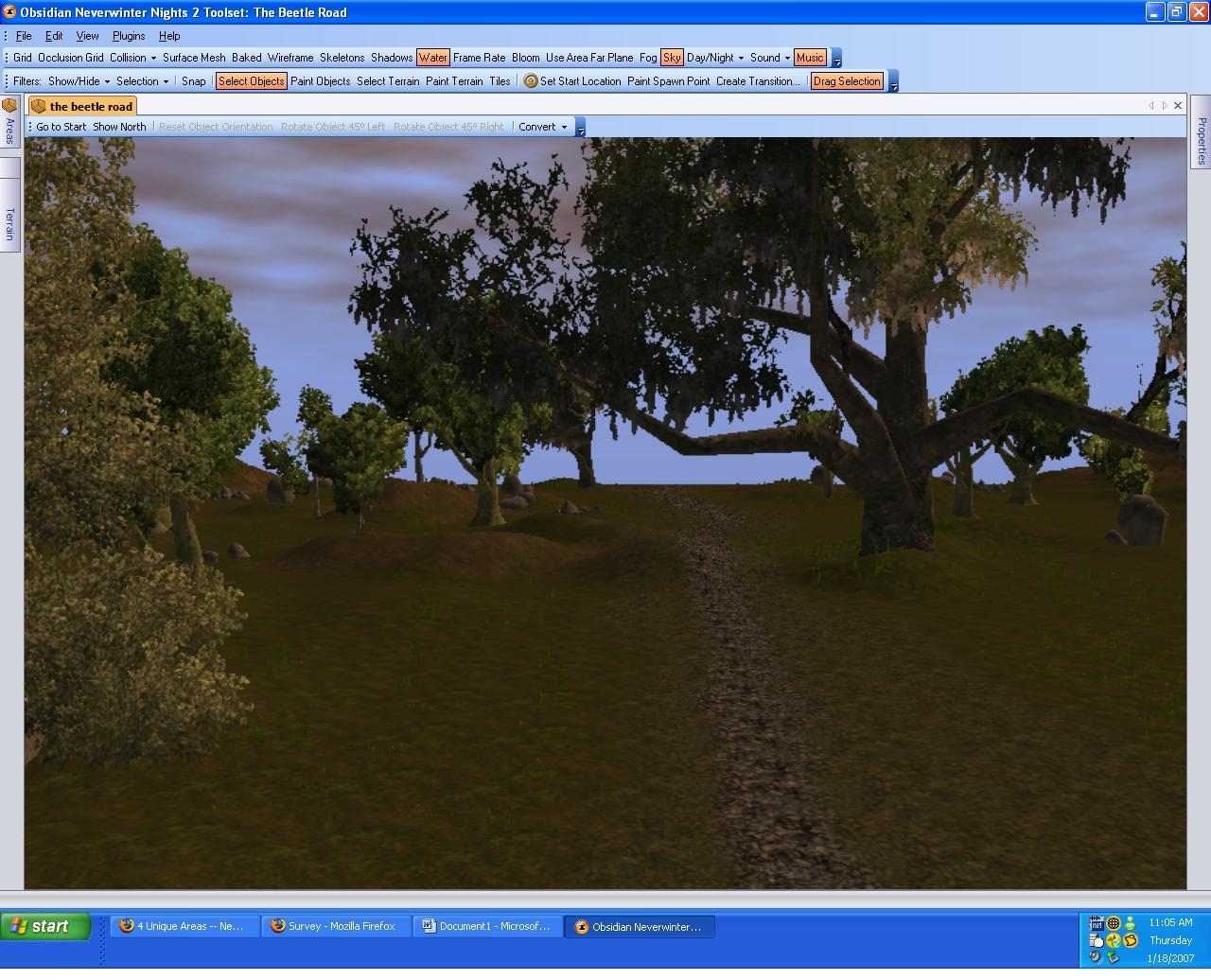 4 areas for your module. These include east road 1, east road 2, Beetle road, and the winding road. The east roads and beetle road can definitely be used as transition areas and the east road 1, beetle road, and winding road use similar textures and pathways. The winding road is a larger area with a lot going for it! As I have worked on these areas for a while this is probably the final version of them unless I get a request. The first several screenshots are of the winding road- when you see a sharp change the first area is east road 1 and the second and third pictures after that are east road 2 - after that more pictures of the winding road and finally towards the end I have added 4 pictures of the beetle road.