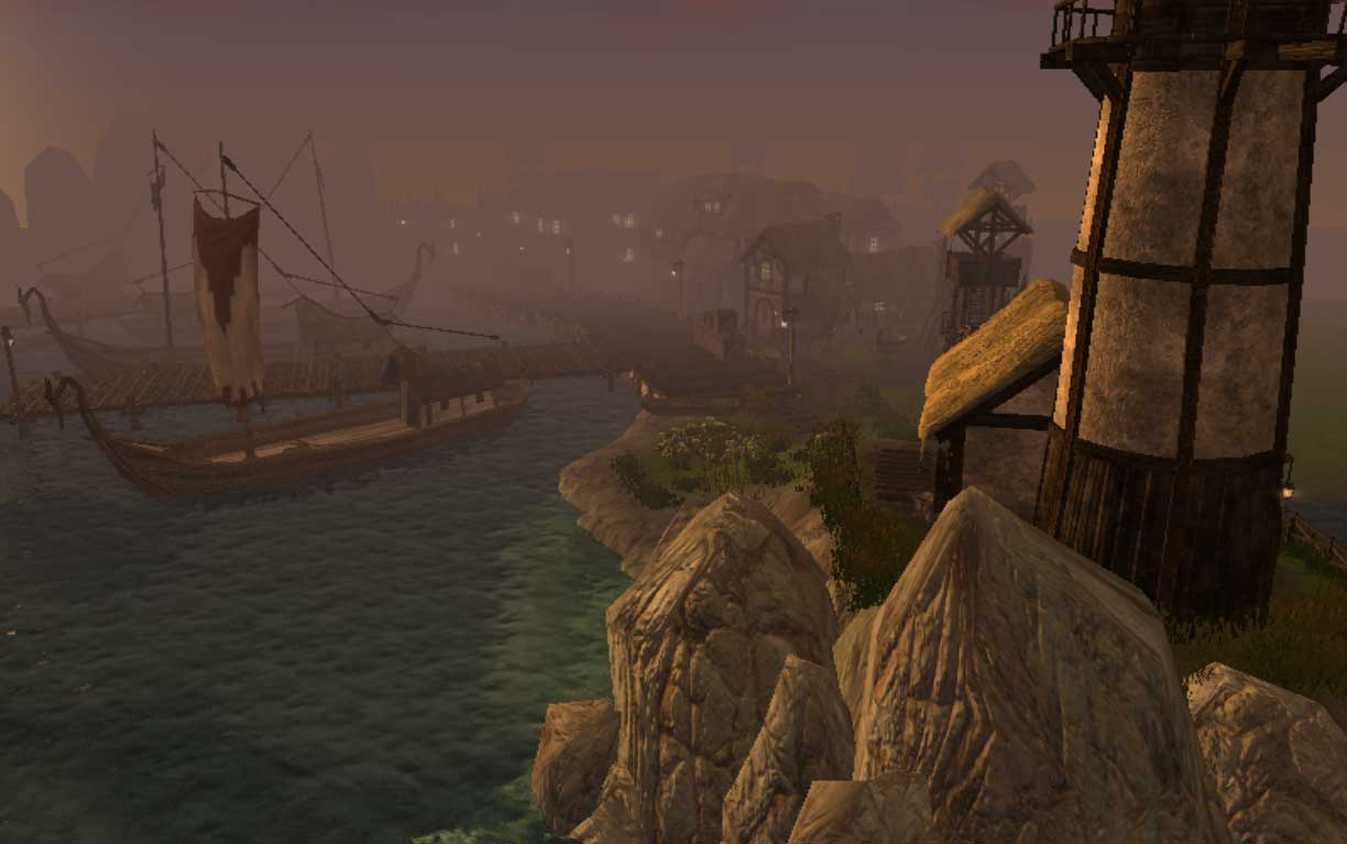 - the overall terrain is very flat outside of the village propper. I believe this may be intentional (farmland/shoreline) but seems a little too flat for my taste (ie. no variances in the terrain makes it feel a little to NWN1 for me).