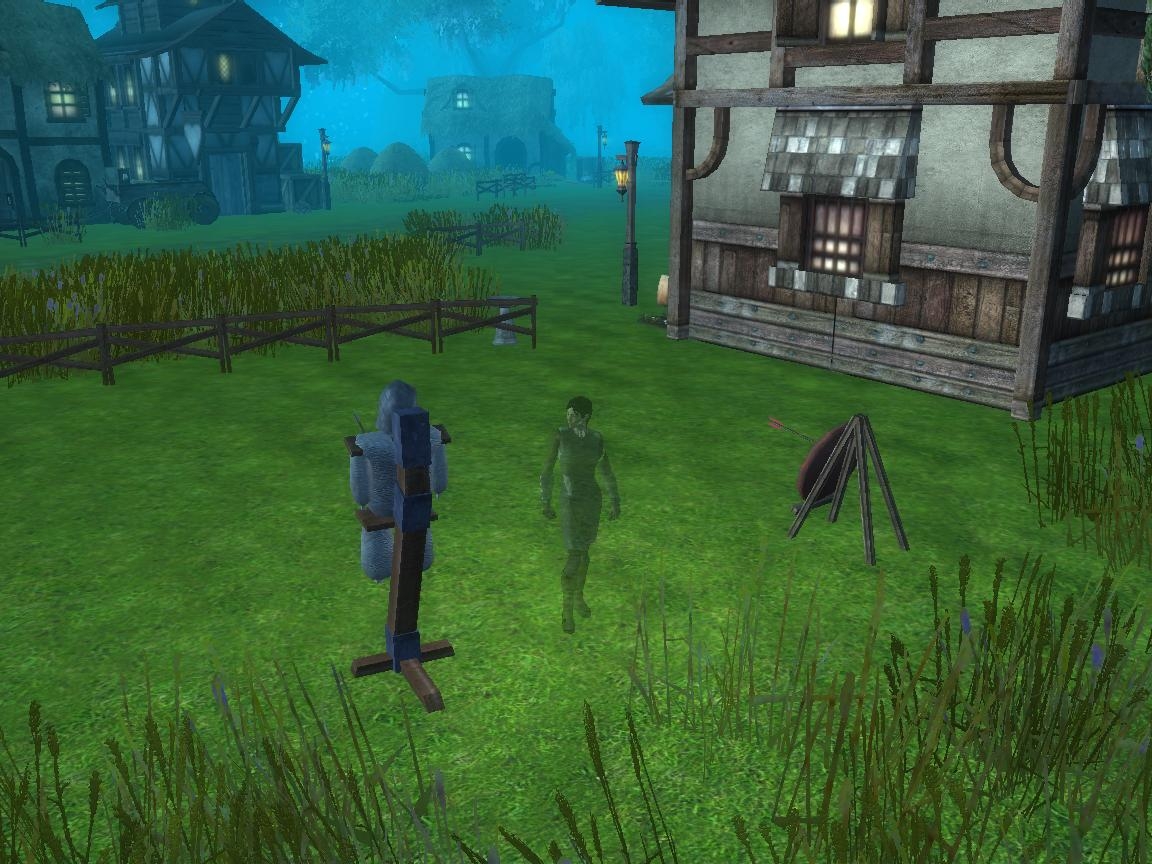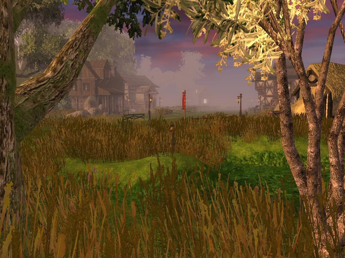 This smaller sized town sits next to a river that spills into a lake and empties on the other side of the town. A single road curves through the town with houses on each side. A guard post is set next to the bridge leaving or entering the town (depending on which way you're going).