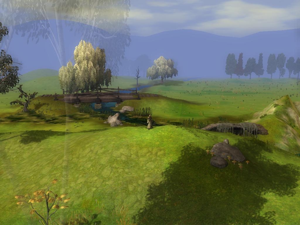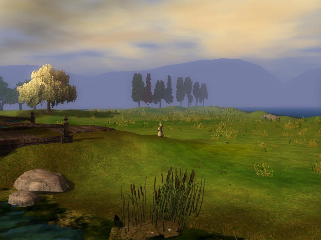 A lovely sense of space visually. I would have liked to be able to walk along and follow the river down a bit further, perhaps to the next bend in the river. I found one oddity to do with the water level. On the other side of the bridge (from spawning in point) I was able to hug close to the bridge and get near the waters edge. With the camera angle at ground level I can see that the water is placed almost like a thin sheet across the surface. This leaves the hollowed out riverbed below totally dry, so you basically see a sheet of floating water. Also I'd soften out the water edges near the bridge as they seem to sharp and the water in places looks to be flowing onto the land in spikes.